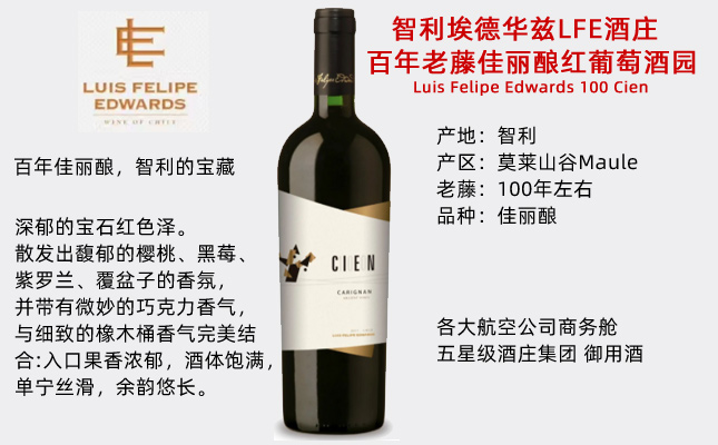 埃德華茲百年老藤佳麗釀紅葡萄酒 Luis Felipe Edwards 100 Cien 埃德華茲酒莊LFE酒位于智利中央谷地產區 埃德華茲酒園赤霞珠干紅葡萄酒 埃德華茲家族黑牌干紅葡萄酒